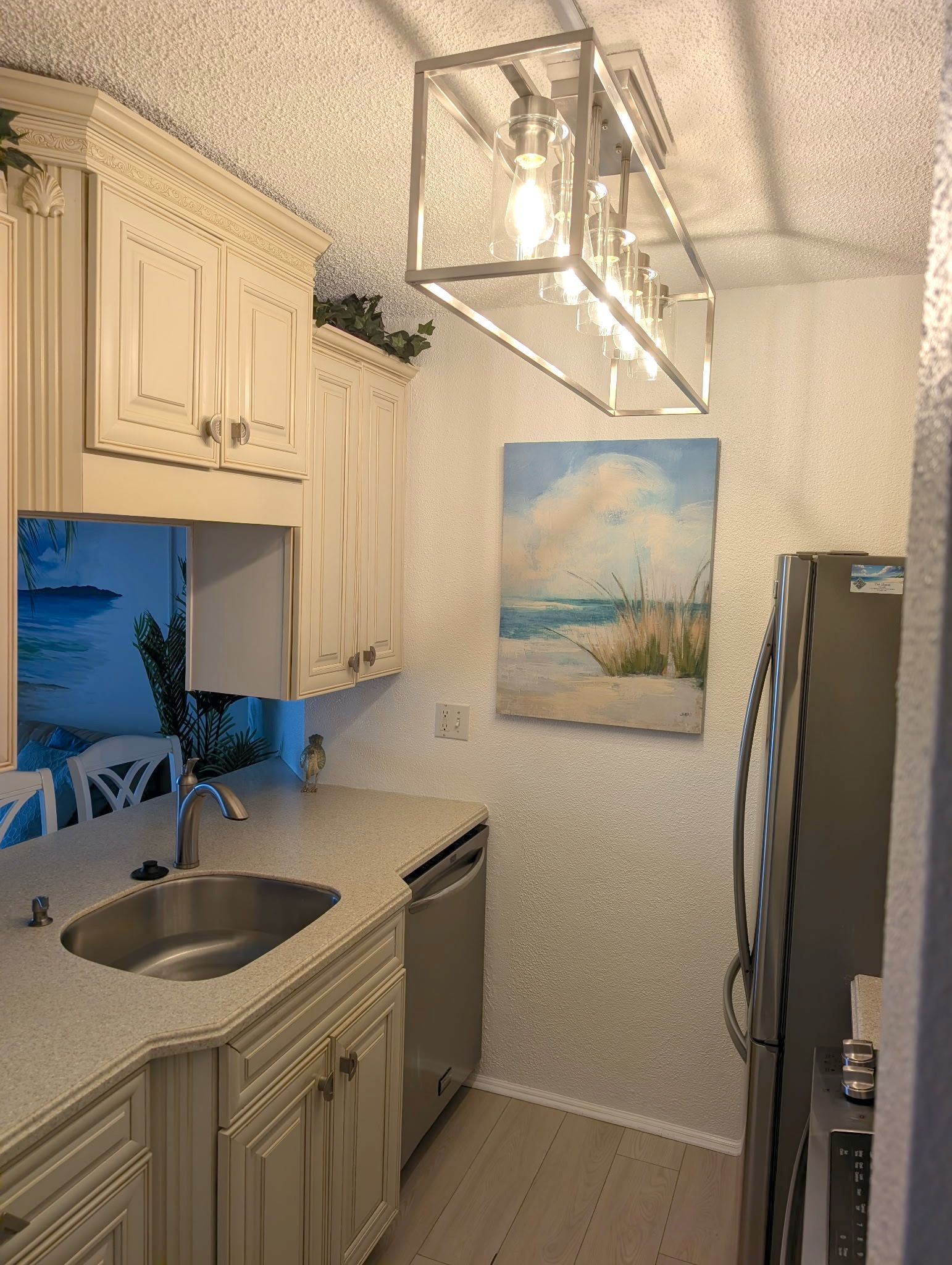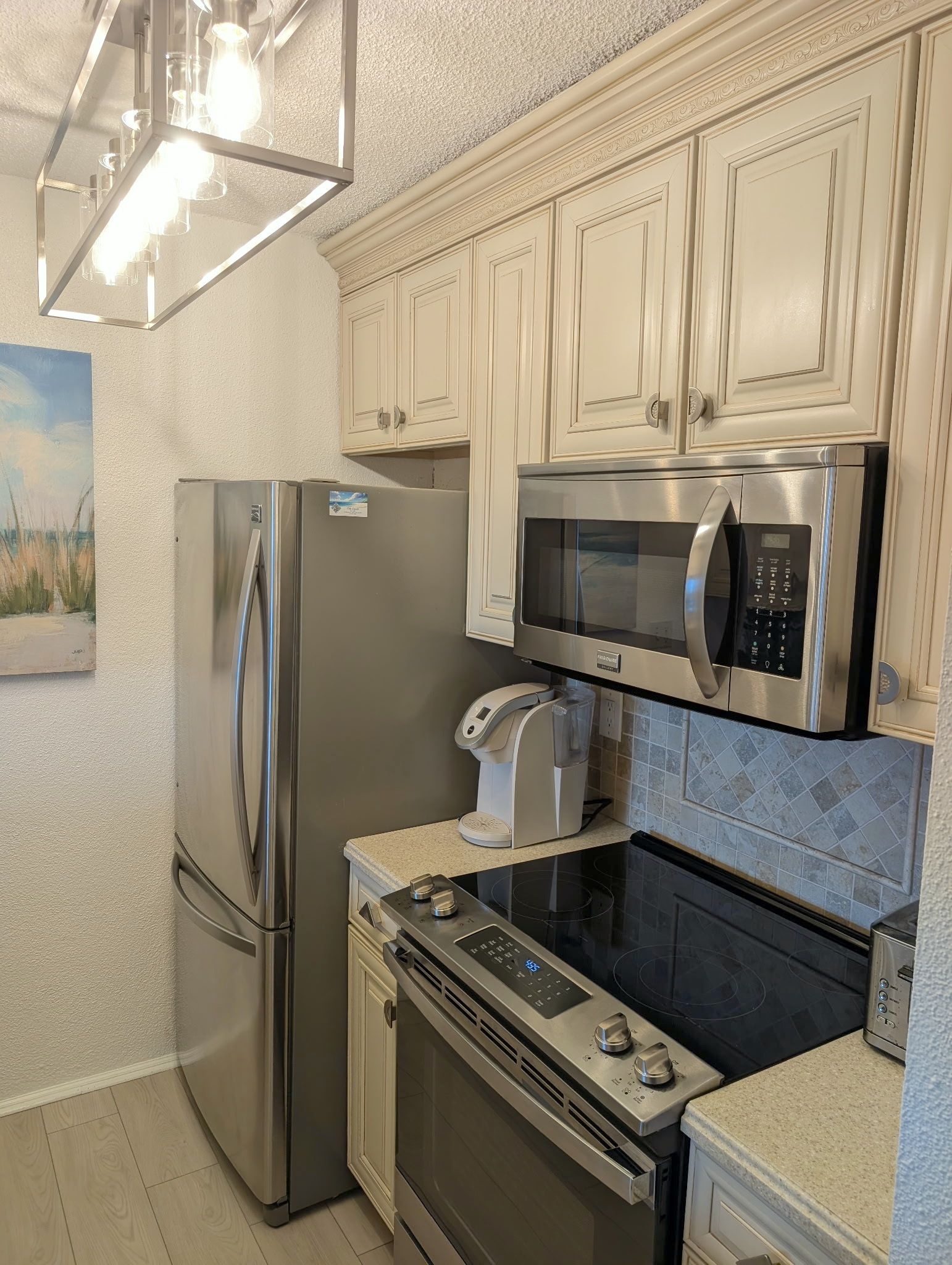 This property has been completely remodeled, new kitchen, living area, balcony and bedroom , it's fun to be in, the beach views are beautiful, access to pool and beach is really convenient from this unit.